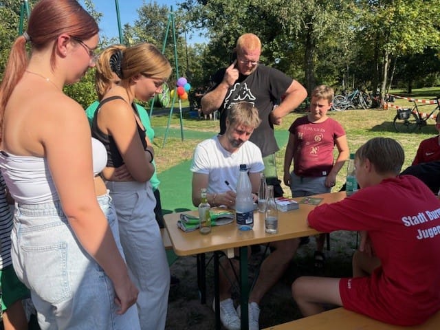 Zur Einweihung des neuen Spielfeldes gab es ein Freundschaftsturnier mit Pestalozzi-Mannschaften aus der Kinder- und Jugendhilfe, der Teilhabe und der Förderschule. Als geladene Gäste waren Mannschaften aus dem Jugendtreff Burgwedel und dem TSG Burgwedel dabei. Es waren spannende Spiele mit vielen Toren und guter Stimmung. Ein besonderes Highlight war der Besuch des ehemaligen Hannover 96-Spielers Julian Börner. Der Fußballprofi verteilte Autogramme, stellte sich allen Fragen rund um Fußball und verteilte bei der Siegerehrung Fußbälle an die Mannschaften.