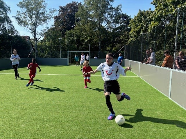 Burgwedel, 27. August 2024: Auf dem Campus der Pestalozzi-Stiftung kann ab sofort gekickt werden. Nach mehr als 2 Jahren Vorbereitung wurde gestern das neue Mini-Fußballfeld mit einem Freundschaftsturnier feierlich eröffnet. Das Spielfeld ist 20 x 13 m groß, hat einen Kunstrasenbelag und befindet sich auf dem ehemaligen Sportplatz in der Pestalozzistraße. Möglich gemacht wurde dieses Projekt durch Spendengelder, Eigenmittel und einem Zuschuss über die Soziallotterie GlücksSpirale.