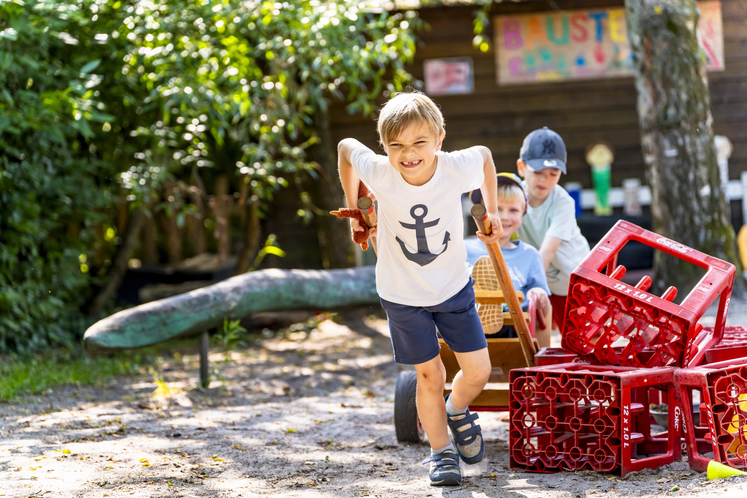 Die offene Arbeit ist geprägt von flexiblen zeitlichen Strukturen und Funktionsräumen wie Bewegungsraum, Bauraum, Werkraum und weiteren Bereichen, in denen die Kinder ihre Kreativität und Fähigkeiten entfalten können. In diesen Räumen arbeiten verlässlich qualifizierte Fachkräfte, die die Kinder in ihrem individuellen Entwicklungsprozess begleiten.